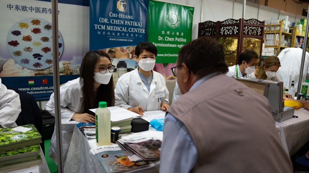 “三年前我就来过这里,但那次人太多,没排上,所以今天我一早就来排队了。我相信中医会帮助我。”65岁的匈牙利女士沃尔高·玛丽卡(Varga Marika)心心念念许久,终于亲身体验到了中医的魅力。